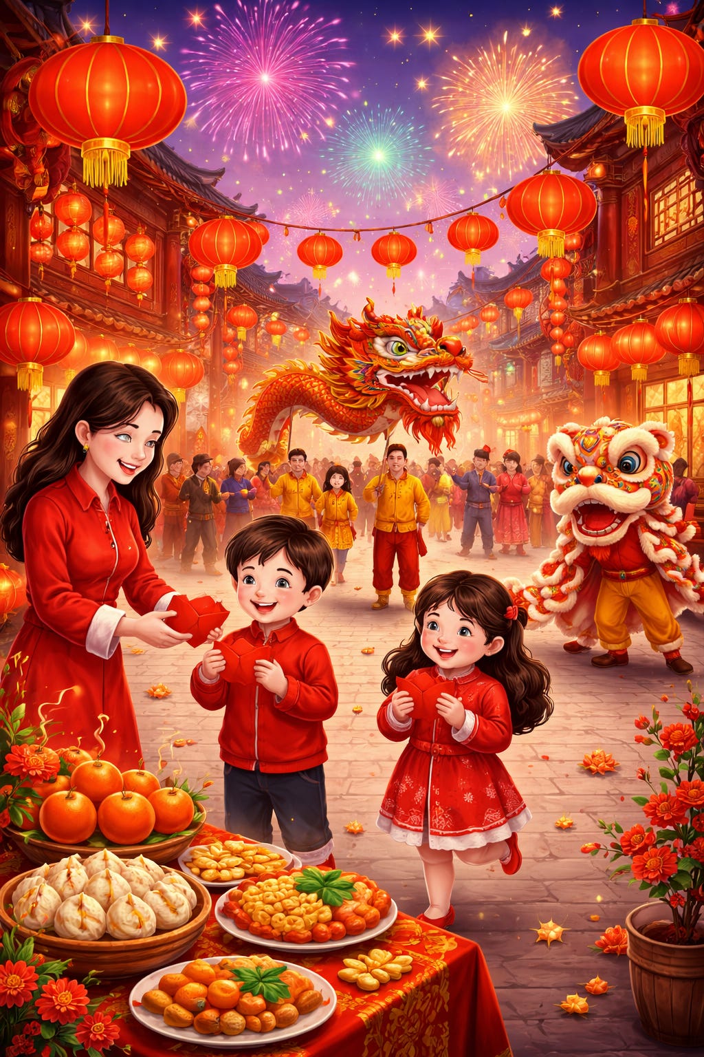Chinese New Year, also called Lunar New Year, is one of the most important and joyful festivals celebrated in China and many other countries. It follows the lunar calendar, which is based on the moon, so the date changes every year. The celebration usually lasts for 15 days, ending with the beautiful Lantern Festival.