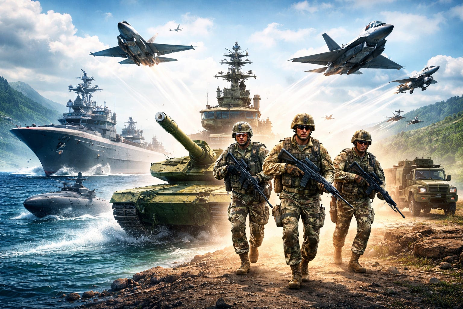 The Army, Navy, and Air Force are like three strong pillars holding up the safety of a country. Each one is special, but together, they are unstoppable!