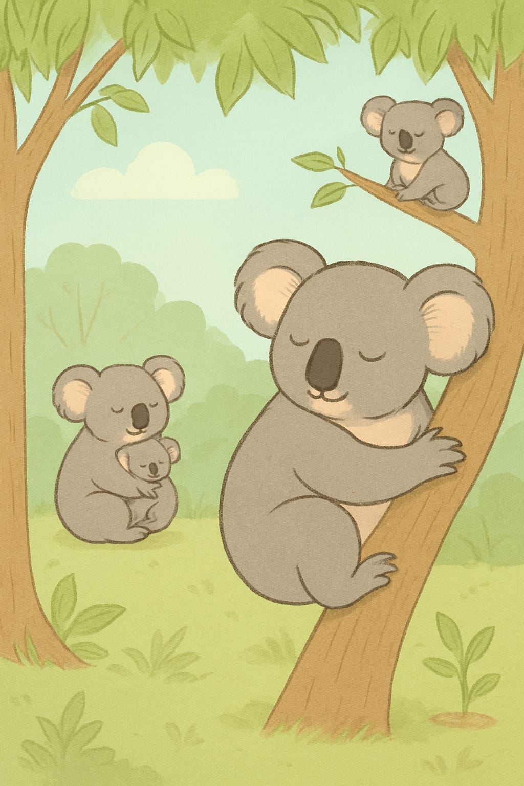 Koalas spend their entire lives among eucalyptus trees, using them as homes, food, and shelter. When forests disappear, koalas lose everything at once. By planting trees, protecting forests, and learning about these gentle animals, we help keep their leafy world alive. When kids grow up caring about nature, the forests grow up strong too.