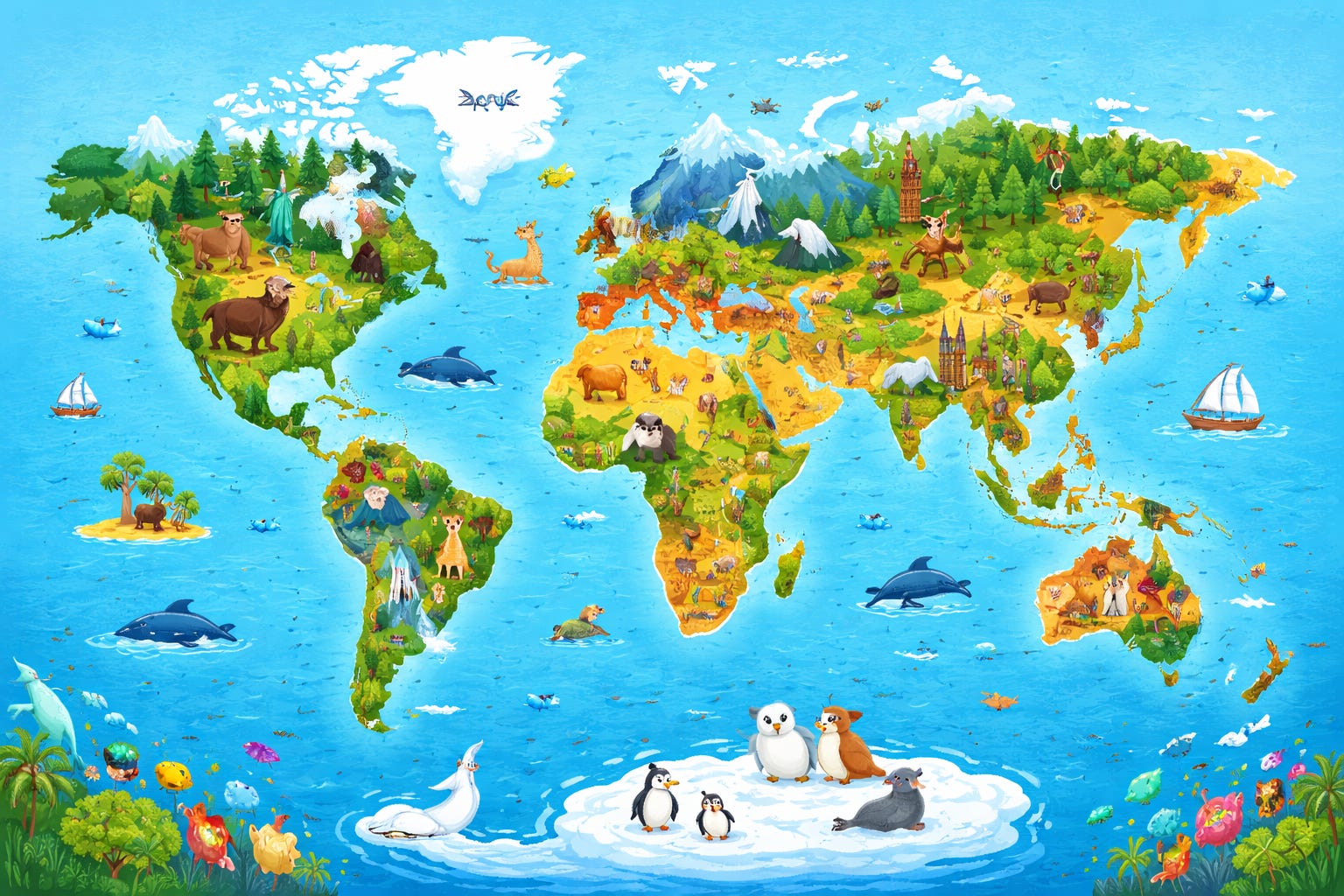 Look at a globe or world map and you’ll see that Earth’s land is not one giant piece. Instead, it is divided into seven huge landmasses called continents. Each continent has its own weather, landscapes, animals, plants, and cultures. Some are covered in ice, some in forests, some in deserts, and some in busy cities. Let’s travel across all seven!