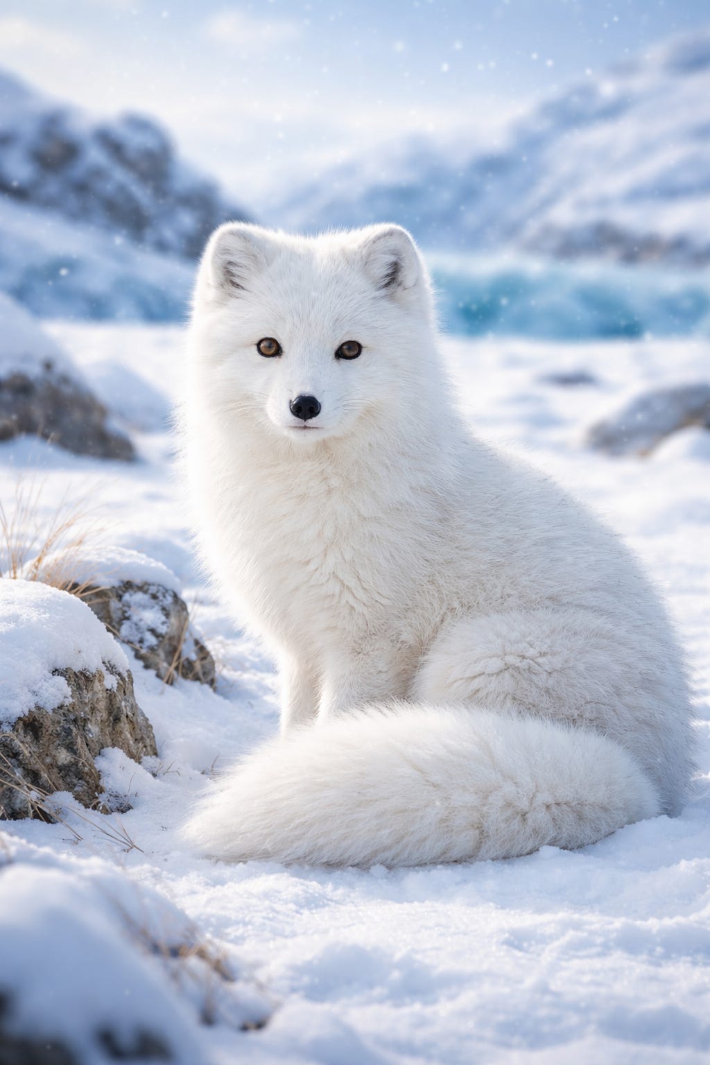 The Arctic fox is perfectly built to survive freezing temperatures. In winter, its fur turns white so it can blend in with the snow, and in summer, the fur changes to brown or grey to match the rocks and land. It has a thick, warm coat that keeps its body cozy even in –50°C weather. Even the bottoms of its feet are covered with fur to protect them from the icy ground. Its big, bushy tail also helps by wrapping around its body like a warm blanket when it sleeps.