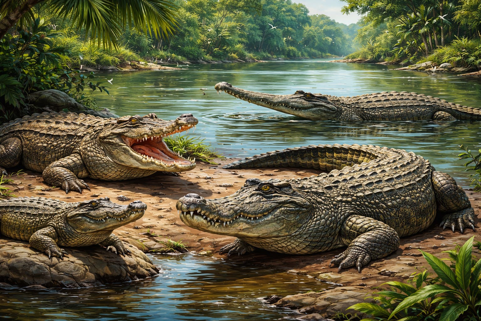 The crocodile family includes some of the oldest and most fascinating reptiles on Earth. These powerful animals have been living on our planet for more than 200 million years, which means they lived at the same time as dinosaurs! They are known for their strong bodies, rough scaly skin, and powerful jaws filled with sharp teeth. Most members of the crocodile family spend a lot of time in water and are excellent swimmers. They usually live in warm regions near rivers, lakes, wetlands, and swamps.